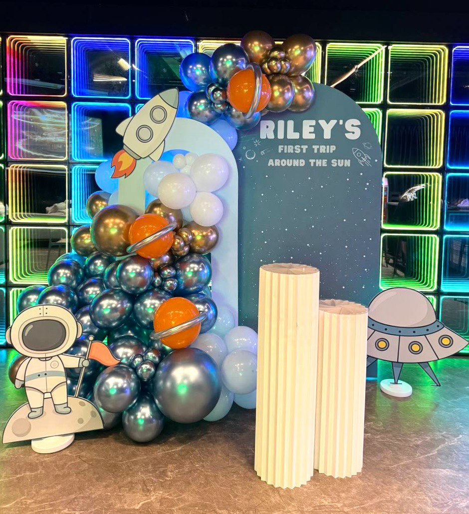 Space Themed Balloon Arch Backdrop - Kids Birthday Decoration